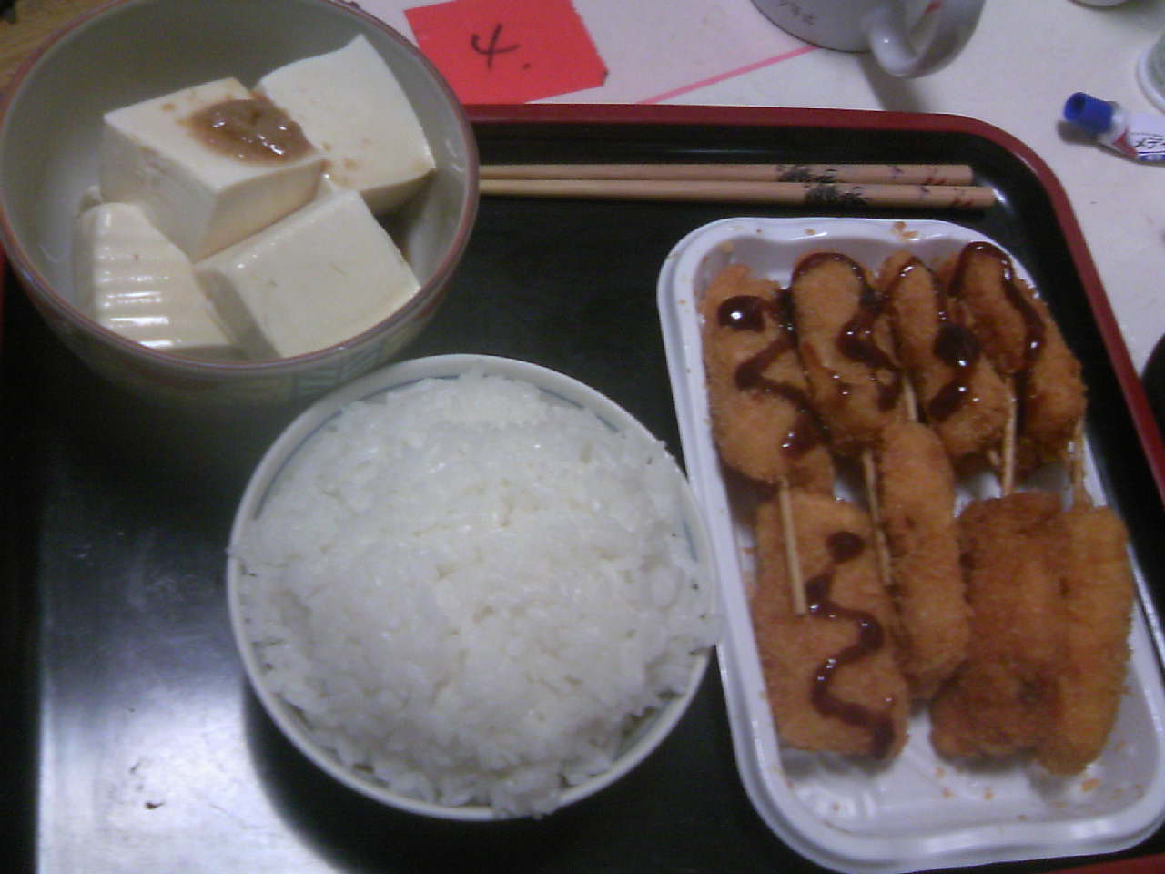 大量のくしかつと冷や奴